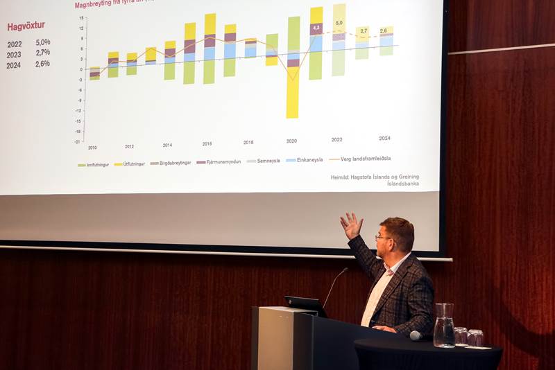 Jón Bjarki sagði að hagvöxturinn á síðasta ári hafi verið knúinn áfram af innlendri eftirspurn sem þýðir að samfélagið var að fjárfesta innanlands og neysla heimilanna jóks innanlands hröðum skrefum.