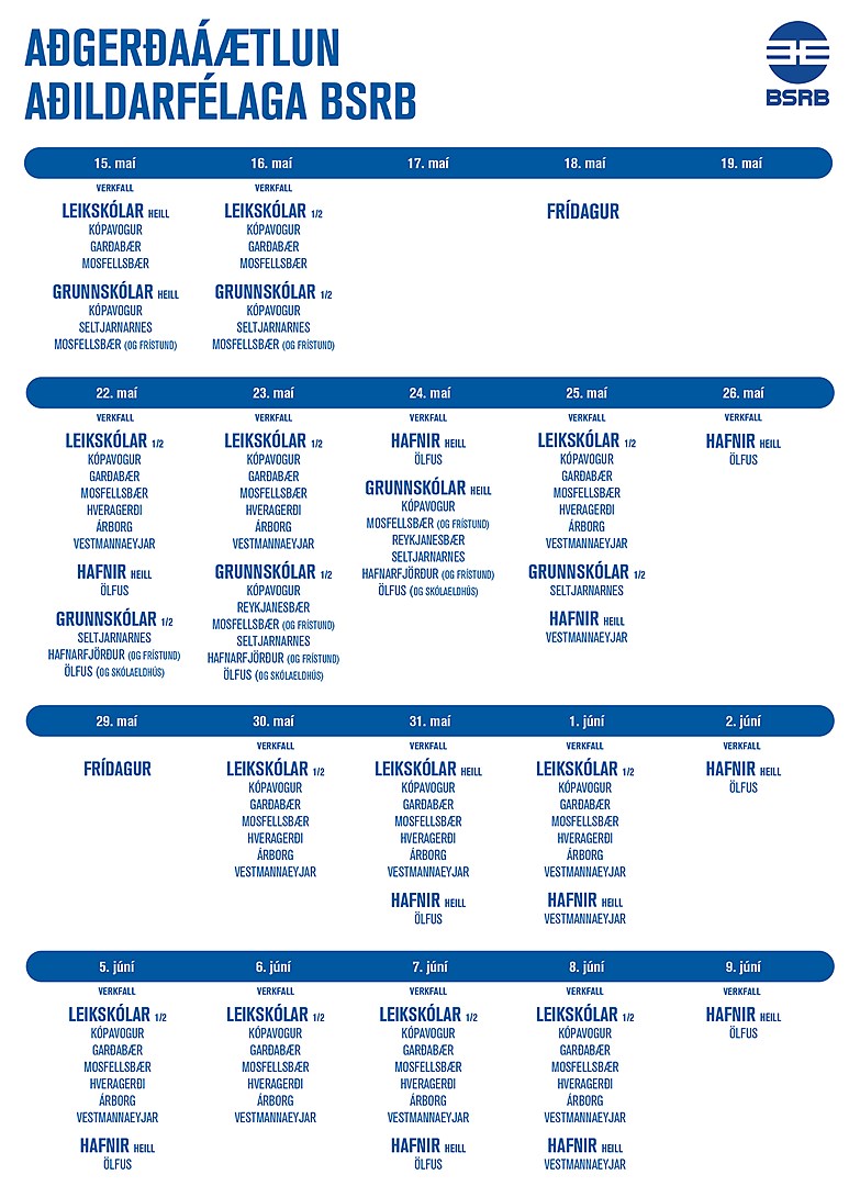 Hér fyrir neðan má sjá yfirlit verkfalla BSRB.