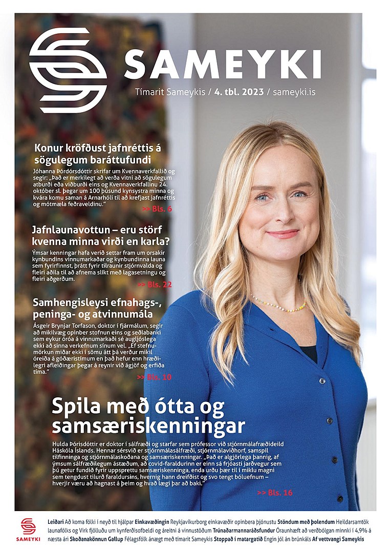 Hulda Þórisdóttir, prófessor við stjórnmálafræðideild Háskóla Íslands, er í forsíðuviðtali í nýútkomnu tímariti Sameykis. Hulda er doktor í sálfræði og hennar sérsvið er stjórnmálasálfræði, stjórnmálaviðhorf, samspil tilfinninga og stjórnmálaskoðana og samsæriskenningar.