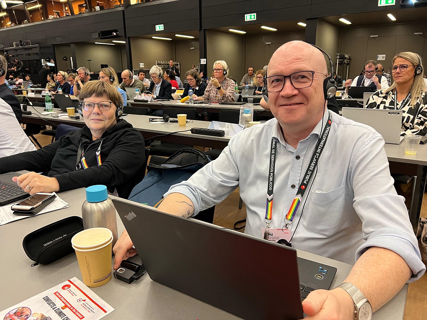 Súni Falkvard Selfoss, formaður Starvsfelagsins, á alþjóðlegu þingi opinberra starfsmanna (PSI) sl. haust.