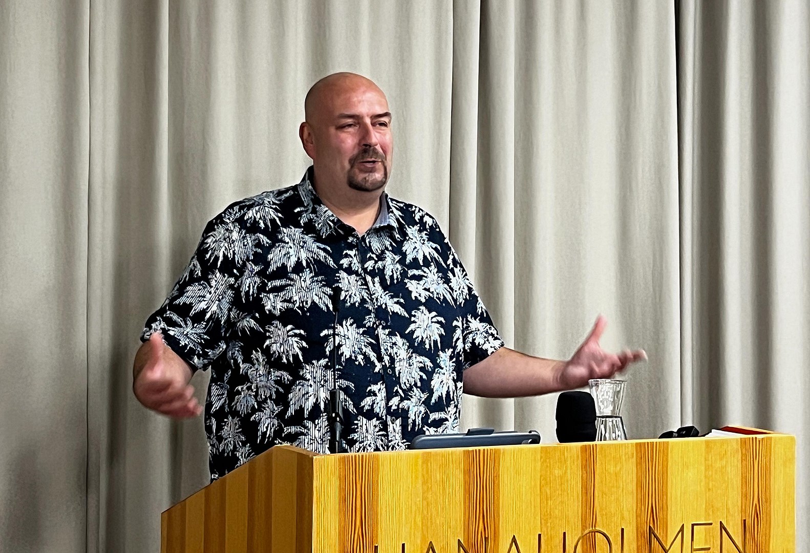 Henrik Haapajärvi, yfirmaður alþjóðamála hjá Verkalýðs-félaginu PRO í Finnlandi, fjallaði um upplýsingaóreiðu á óvissutímum. Ljósmynd/Axel Jón