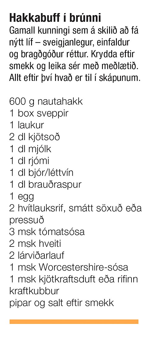 Nautahakk er hið fullkomna ísskápaprótein. Erfitt að finna afurð sem hægt er að nýta á fjölbreyttari hátt. Endar þó fulloft ýmist með spaghettíi eða sem hamborgari. Það er því tími til kominn að rifja upp að í hakkið er fleira spunnið og þarf ekki að leita lengra en í hakkabuff í brúnni.
