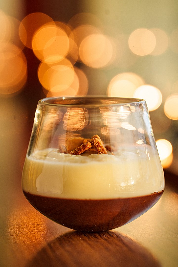 Súkkulaðimús er gjarnan flokkuð sem barnaeftirréttur. Þessi mús á þó meira skylt við súkkulaðisósu heldur en súkkulaðibúðing úr poka. Ofan á búðinginn er svo sett vanillukrem og ofan á það kemur svo piparkökumulningur. Svona rétt til að brjóta upp áferðina og öskra inn jólin.