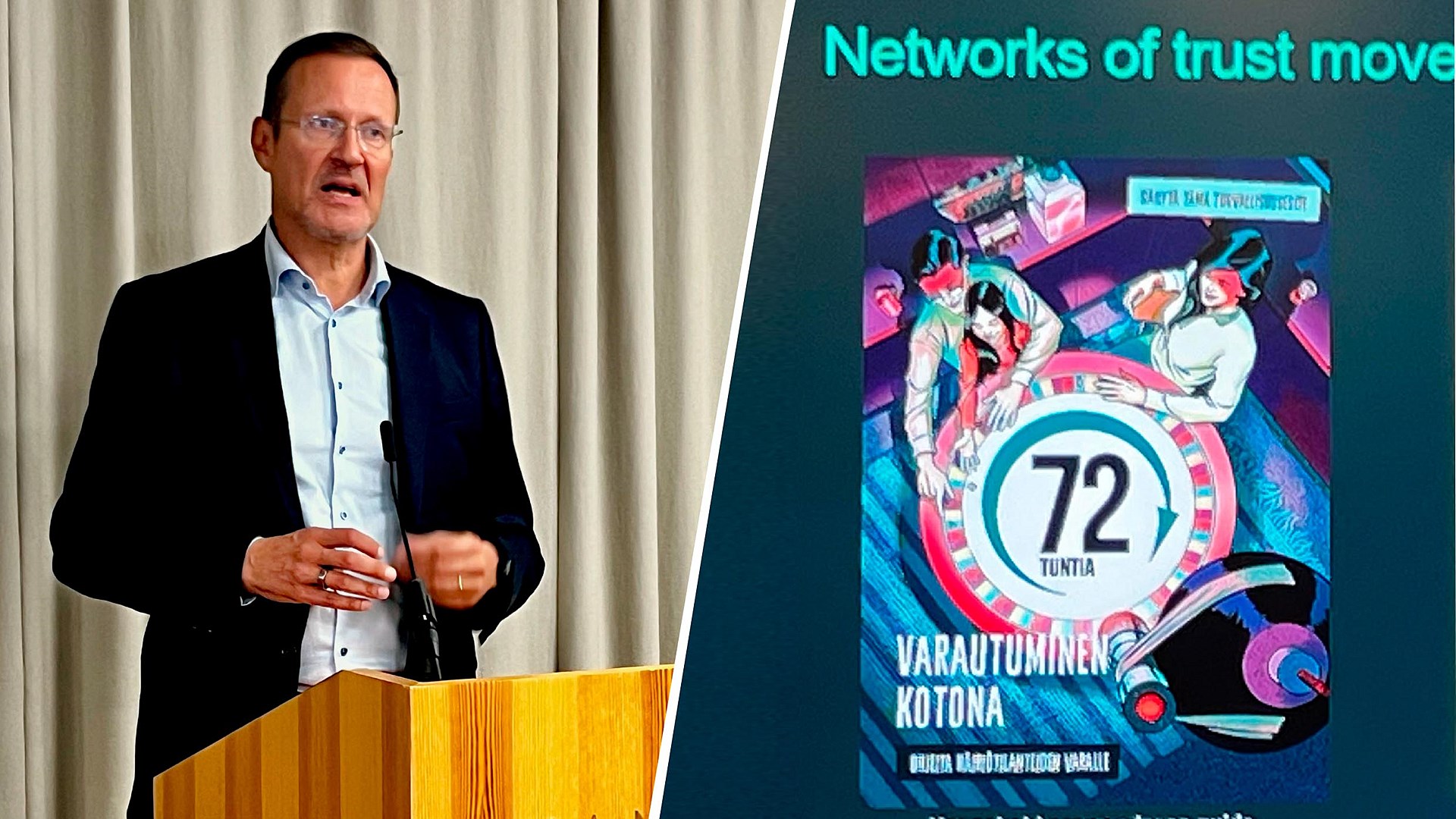 Janne Känkänen er forstjóri Neyðarbirgðastofnunar Finnlands (NESA) og hélt hann erindi um innviðaöryggi ...