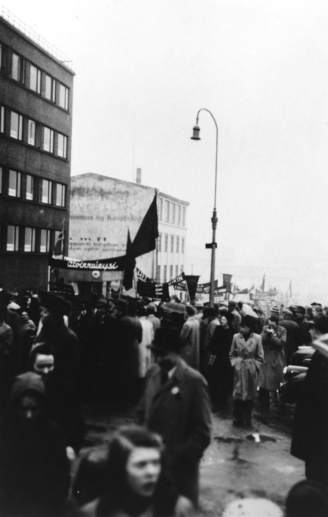 Myndin hér fyrir neðan er frá kröfugöngu á 1. maí 1943. Gangan er söguleg þar sem opinberir starfsmenn tóku þá þátt í fyrsta sinn með formlegum hætti.