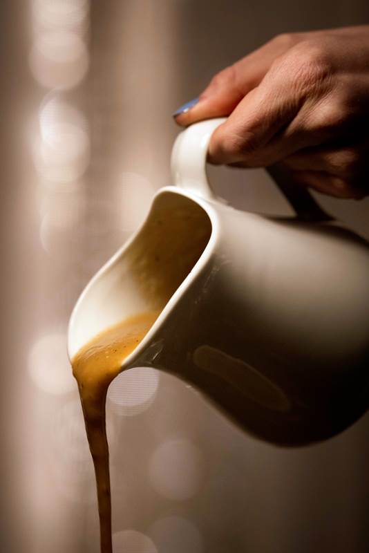 Af því að það eru nú jólin er nánast skylda að baka sósuna upp. Enga sósujafnara hér og helst engan sósulit. Að baka upp sósu þýðir að þykkja hana með hveiti og fitu. Smjörbolla er búin til úr jöfnum hlutföllum af smjöri og hveiti – eftir vigt, ekki rúmmáli. Í líter af vökva þarf sirka 90–100 grömm af hvoru. Af því að sósan á að vera brún og bragðgóð er gott ráð að steikja smjörbolluna við rétt rúmlega miðlungshita í nokkra stund. Hálfa til eina og hálfa mínútu. Velta hveitinu og smjörinu um botninn þangað til blandan tekur á sig ljósbrúnan lit og ilmar eins og af léttsteiktum hnetum. Passa að bollan dökknar hratt þegar hasarinn byrjar og brennur auðveldlega og það er óæskilegt í jólasósur.