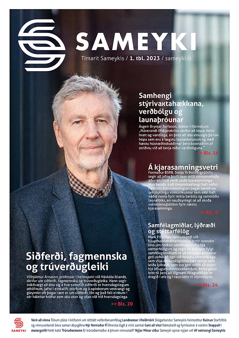 Þórarinn Eyfjörð formaður Sameykis segir í leiðargrein: „Flest launafólk á samningssviði Sameykis vinnur í velferðar-, mennta- og heilbrigðiskerfinu – það er að segja í þeim kerfum sem tryggja að samfélagið veiti þjóðinni öryggi, velferð og þekkingu og þar með forsendur fyrir kröftugu atvinnulífi. Það hefur margoft komið fram að okkar fámenna þjóð vill traustan samfélagslegan rekstur og í þeirri framþróun sem samfélagið hefur verið í á undanförnum árum vekur það sérstaka athygli að hlutfall starfsfólks hjá hinu opinbera stendur í stað. Það er deginum ljósara að ábyrgð félagsfólks í Sameyki á vel virkandi gangverki samfélagsins er mikil. Tökum okkur því gott pláss í kröfunni um réttlátt velferðarsamfélag, þar sem áherslan er að allir leggi sanngjarnan skerf til samfélagsins.“