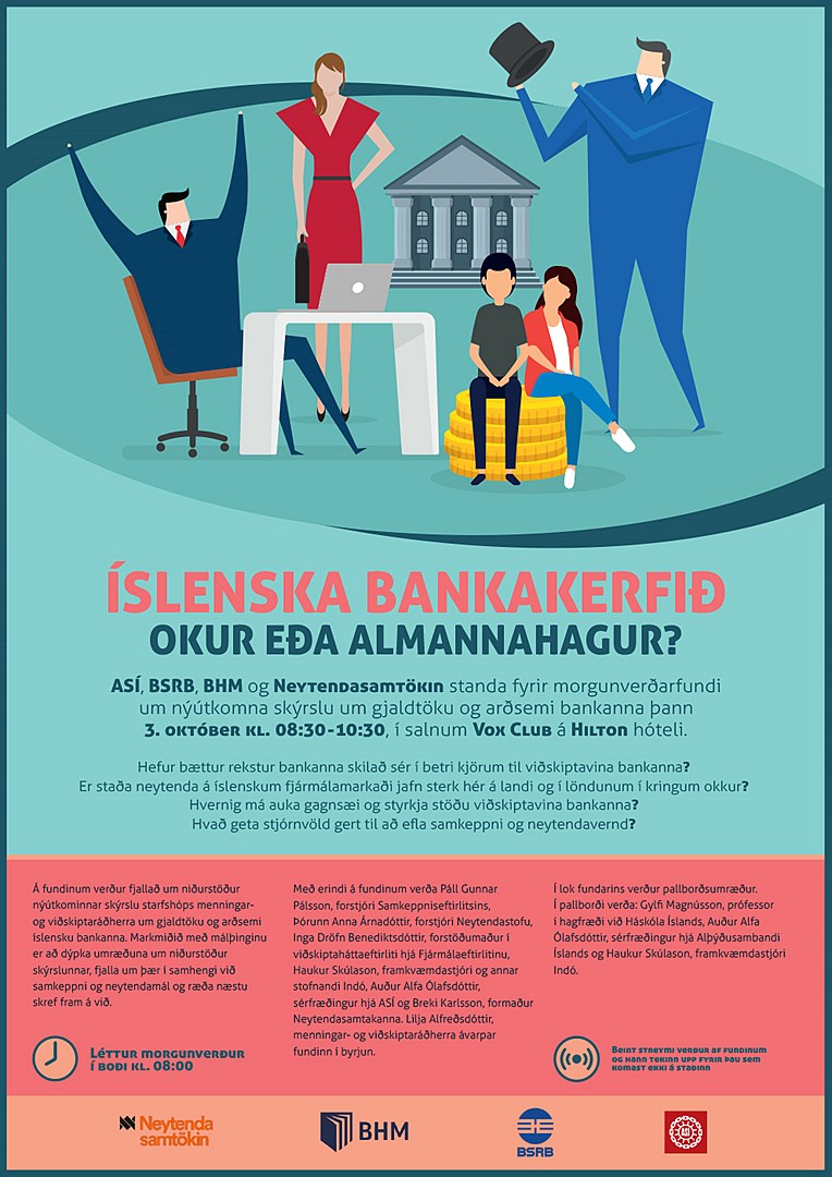 ASÍ, BSRB, BHM og Neytendasamtökin standa fyrir morgunverðarfundi um nýútkomna skýrslu um gjaldtöku og arðsemi bankanna þann 3. október kl. 08:30-10:30, í salnum Vox Club á Hilton hóteli. Léttur morgunverður verður í boði frá 08:00.