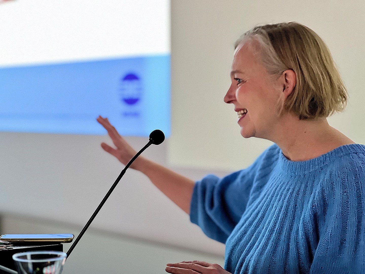 Ingibjörg Sif Sigríðardóttir, formaður Sameykis, á trúnaðarmannaráðsfundi Sameykis í dag.