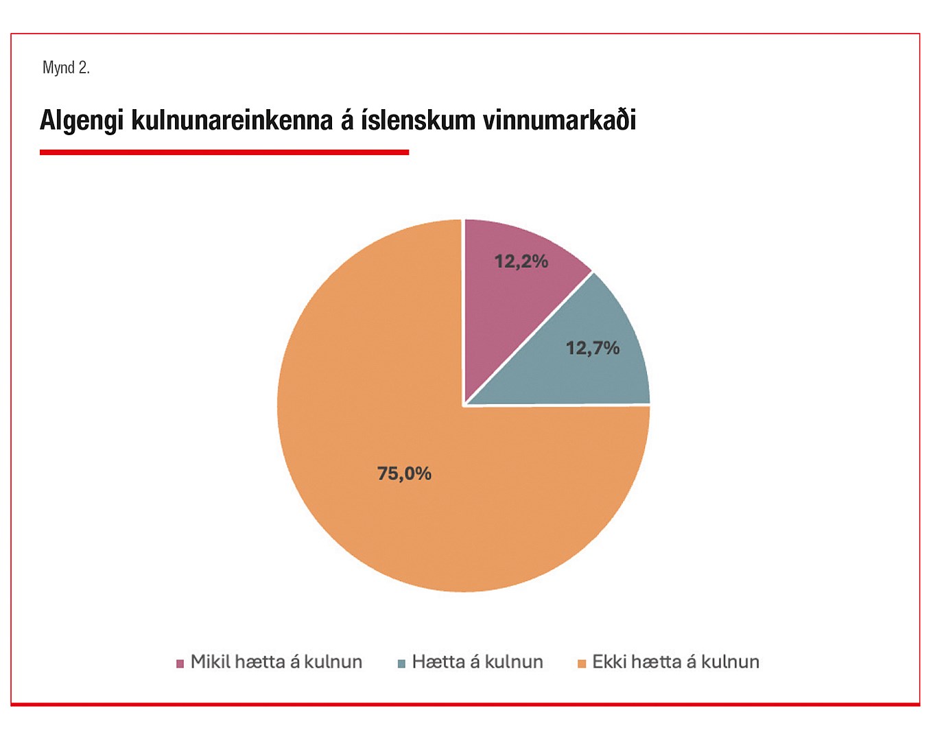 Aðrar þjóðir sem notað hafa sama mælitæki til að meta kulnunareinkenni hafa birt tölur á bilinu 6,6% (Finnland) til 25,7% (Japan) varðandi mikla hættu á kulnun. Þessar niðurstöður á íslenskum vinnumarkaði benda því til að við séum nokkurn veginn fyrir miðju af þeim löndum sem hafa birt niðurstöður sambærilegra rannsókna.