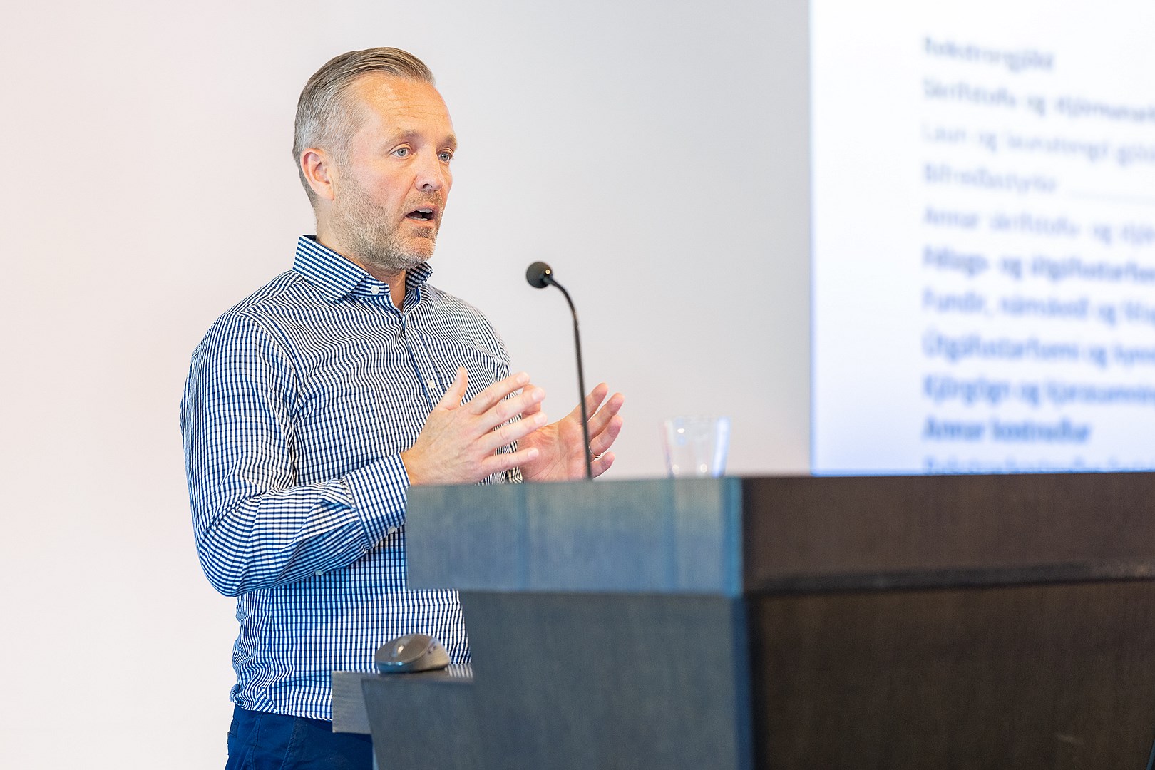 Gunnsteinn R. Ómarsson, framkvæmdastjóri Sameykis, fer yfir fjárhagsáætlunina.