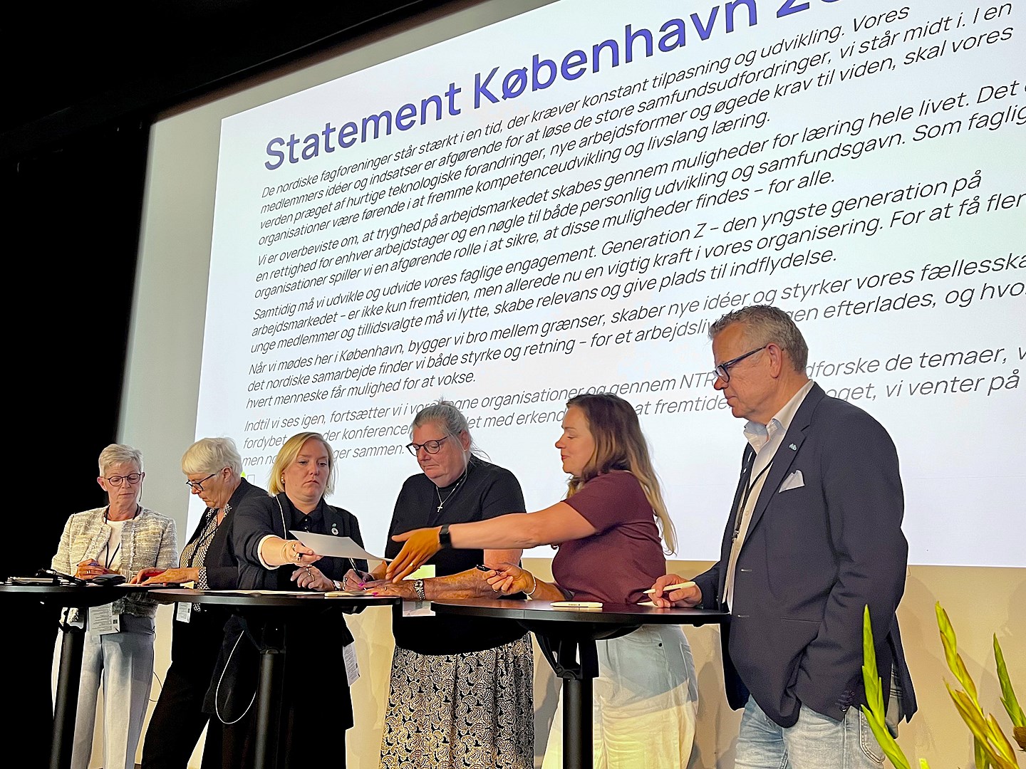 Í lok ráðstefnunnar var samþykkt yfirlýsing þar sem lögð var áhersla á að tryggja öllu launafólki tækifæri til náms alla ævi, að stéttarfélög verði virkir þátttakendur í innleiðingu gervigreindar og að opinber þjónusta verði áfram burðarás norrænna samfélaga.