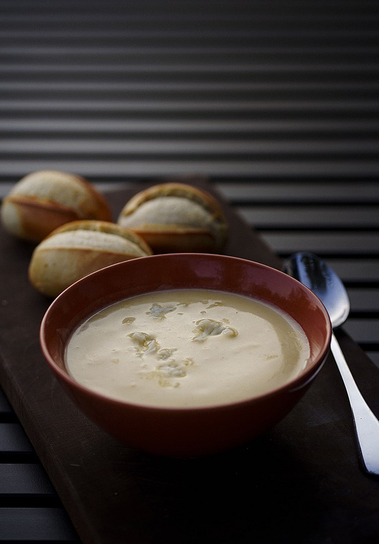Þessi súpa er svo, eins og svo margt, betri daginn eftir. Þá er komið blómkálsbragð af öllu, sterkjan búin að sjúga í sig allan þann vökva sem hún heldur og súpan verður alveg ótrúlega „hótelleg“ á bragðið.