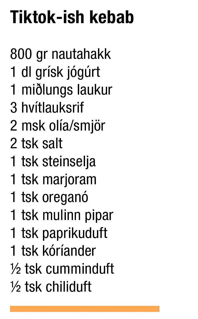 Internetið er að jafnaði viðsjárverður staður. Algórythminn sendir okkur í bergmálshella og lokar okkur oft þar inni. En stundum, bara stundum kemur eitthvað allrar athygli vert. Slík stund átti sér stað seint á síðasta ári þegar Tiktok bauð okkur upp á heimalagað Döner Kebab. Það næstum fyllir allar þarfir sem annars þyrfti til tyrkneskættaðan Þjóðverja með adressu í vestanverðri Kaupmannahöfn.