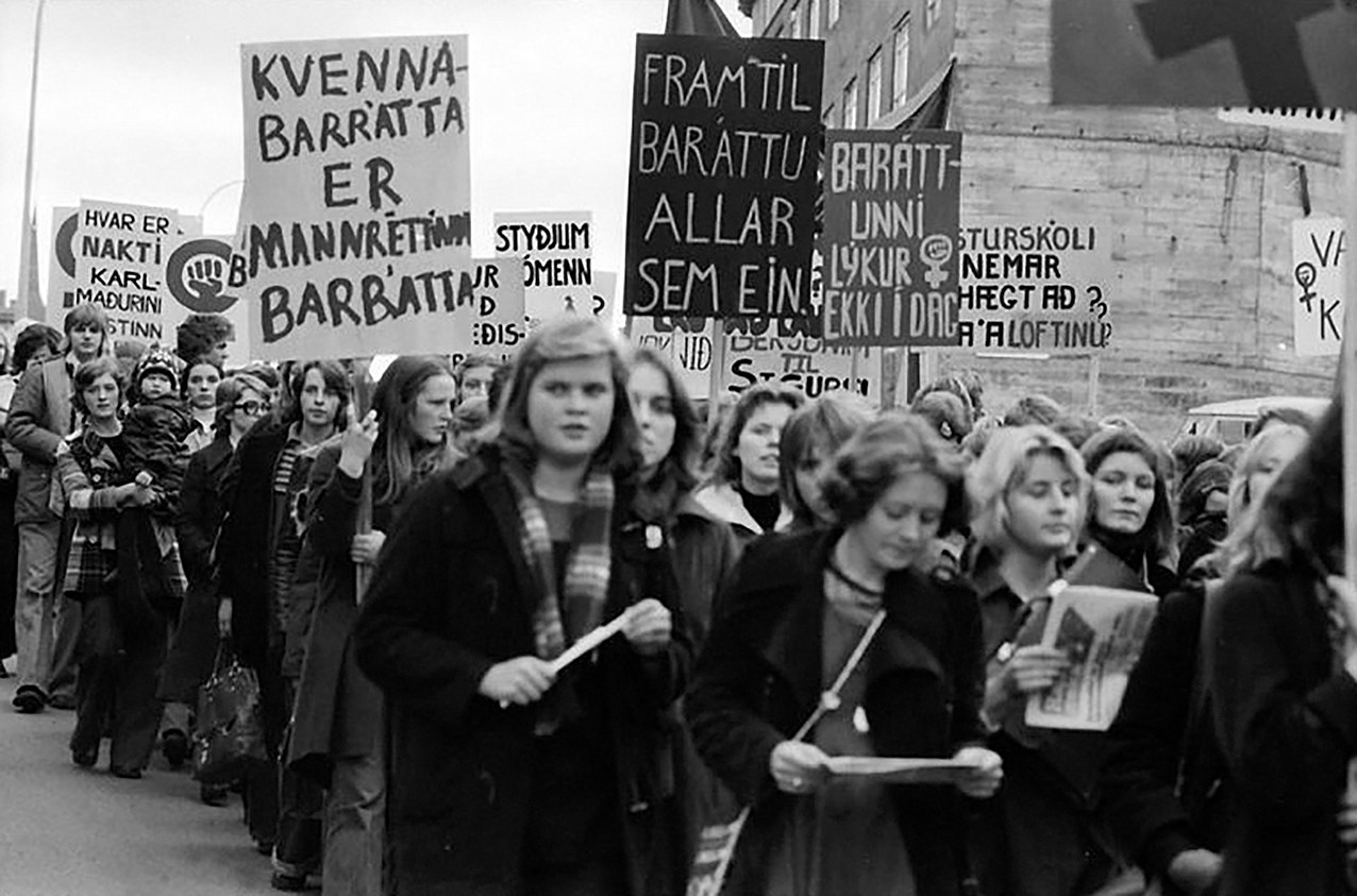 Kvennafrídagurinn var haldinn 24. október 1975 undir kjörorðunum „jafnrétti, framþróun, friður“. Ljósmynd/Ólafur K. Magnússon