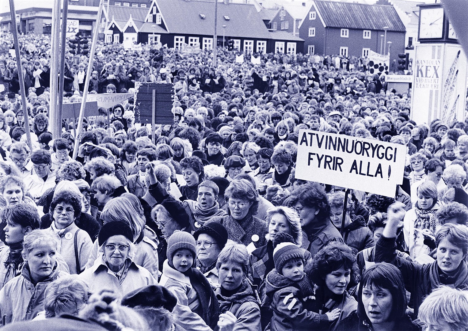 Október 1985, 10 ár frá Kvennafrídeginum. Hópur kvenna á Lækjartorgi og nágrenni. Ljósmynd/St.Rv.