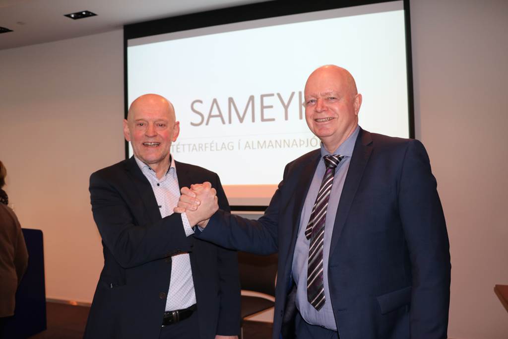 Að loknum aðalfundi og tilkomu sameinaðs félags er margvísleg undirbúningsvinna nú komin á fullt á skrifstofunni. Að ýmsu er að huga og margt sem þarf að gera. Vinna við undirbúning að nýrri heimasíðu er til dæmis hafin, skoðun sameiginlegs orlofskerfis og svo þarf Sameyki að eiga sitt sérstaka merki, ekki satt? Starfsmenn notuðu daginn vel og æfðu sig meðal annars í að svara í símann! Við munum passa upp á að kynna allar breytingar um leið og þeir þær verða að veruleika, stundum jafnvel fyrr. En þetta mun allt taka tíma og þangað til biðjum við ykkur um að sýna örlitla þolinmæði og skilning þar sem flækjustig verkefnanna er með mesta móti þessa fyrstu daga. Við viljum hins vegar óska félagsmönnum öllum innilega til hamingju með sameiginlega félagið okkar.