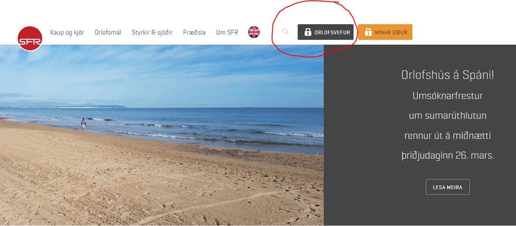 Orlofskerfi SFR og St.Rv. hefur nú verið sameinað og þess vegna höfum við að mestu lokað fyrir gamla Orlofsvef SFR. Í staðinn þarf að velja tengil beint inn á Orlofsvef St.Rv. sem við höfum sett efst á síðuna okkar (sjá mynd). Svona verður þetta þar til við höfum fengið nýja vefsíðu en kerfið ætti að vera einfalt og þægilegt fyrir alla í notkun. Orlofsblað félagsins er nú að vera tilbúið og fer í prentun næstu daga. Félagsmenn geta átt von á blaðinu inn út lúguna hjá sér eftir rúma viku en í blaðinu má finna ítarlega kynningu á öllum orlofskostum Sameykis. Úthlutun fyrir sumarið innanlands verður kringum páskana en nú stendur yfir úthlutun í orlofshús og íbúðir félagsins á Spáni í sumar. Við hvetjum félagsmenn til að kíkja inn á Orlofsvefinn og kynna sér möguleikana.