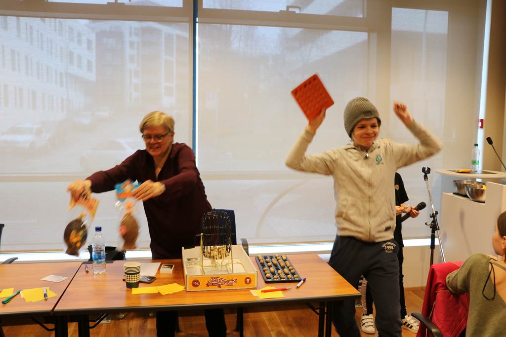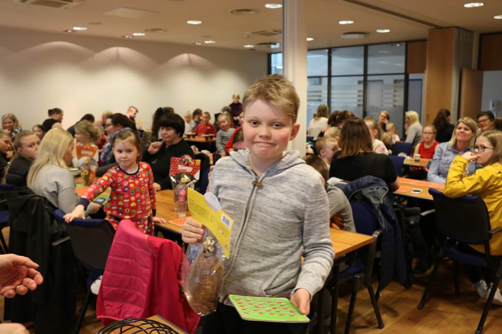 Skemmtilegt og fjölmennt páskaeggjabingó Sameykis fór fram um helgina á Grettisgötu 89. Þar komu saman um 100 manns, börn og fullorðnir sem skemmtu sér saman og spiluðu bingó og fjölmargir fóru heim með páskaegg af öllum stærðum. Rut Ragnarsdóttir var bingóstjóri og spilað var eftir alls konar kúnstum. Börnin lásu brandara á milli atriði og gleðin var mikil eins og myndirnar sýna.