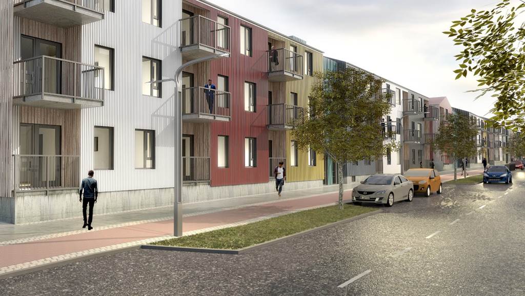 ASK arkitektar teiknuðu húsin sem verða byggð úr steypu og timbri.