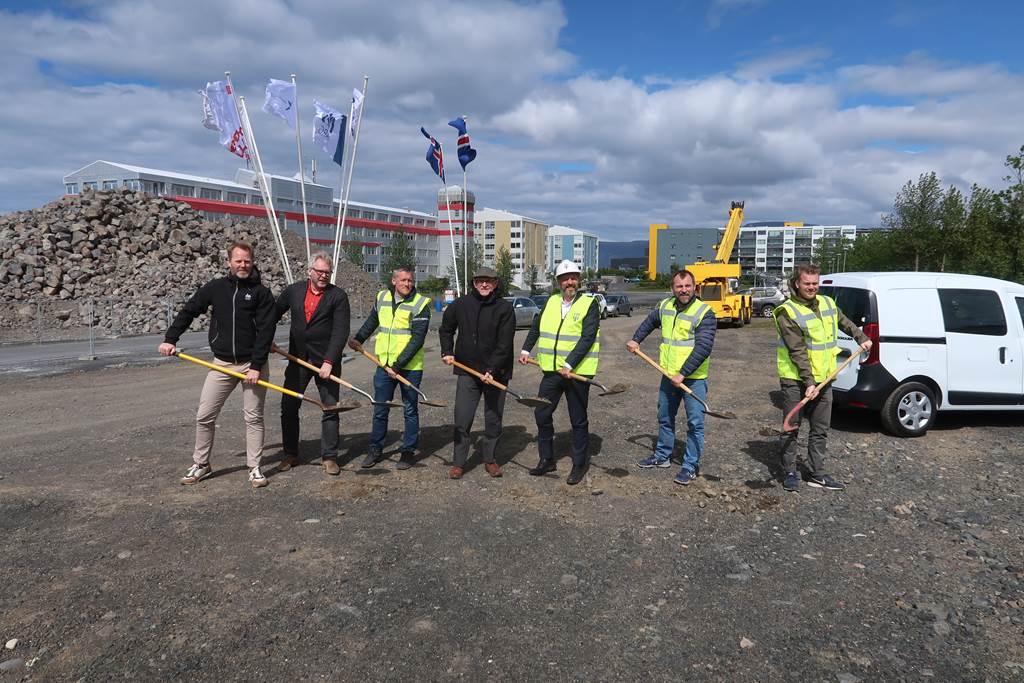 Fulltrúar Bjargs og verkalýðsfélaganna ásamt Degi B. Eggertssyni borgarstjóra og fulltrúum frá Þingvangi tóku skóflustunguna í gær en framkvæmdir við íbúðirnar hefjast strax.
