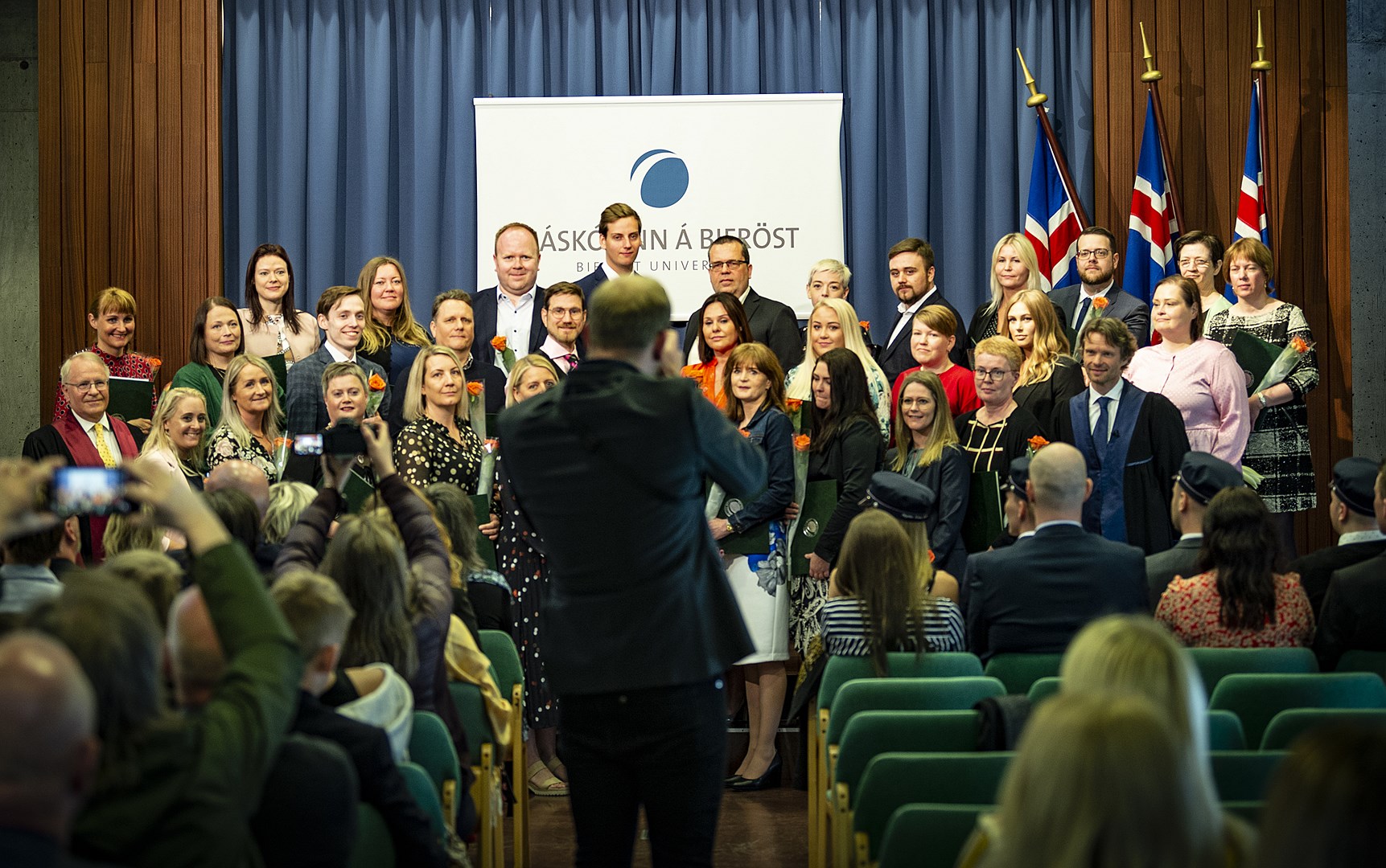 Laugardaginn 20. júní urðu þau tímamót að 23 starfsmenn ríkisins útskrifuðust úr diplómanámi í opinberri stjórnsýslu frá Háskólanum á Bifröst. Þetta er í fyrsta sinn sem boðið var upp á nám í opinberri stjórnsýslu á fagháskólastigi og var það þróað af Fræðslusetrinu Starfsmennt og Háskólanum á Bifröst í samvinnu við Sameyki stéttarfélag í almannaþjónustu og fjármála- og efnahagsráðuneyti. Um er að ræða tilraunaverkefni sem er liður í úrvinnslu bókunar með kjarasamningi Sameykis og fjármálaráðherra um að fjölga menntunar- og starfsþróunarúrræðum fyrir ríkisstarfsmenn. Það voru 28 starfsmenn frá 23 stofnunum ríkisins sem hófu nám haustið 2018 og afar ánægjulegt að langflestir náðu að fara alla leið, en það getur verið átak að fara í nám og samræma það við vinnu og fjölskyldulíf. Áhersla var lögð á að nemendur í tilraunahópnum tækju námið á hálfum hraða til að dreifa álaginu, þannig að 60 einingarnar dreifðust á tvö ár.