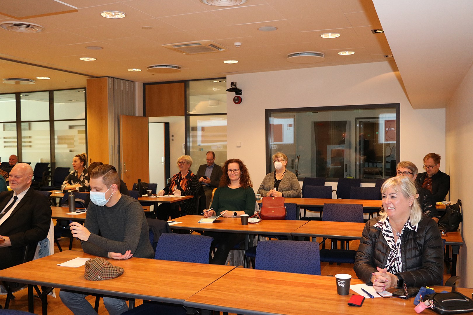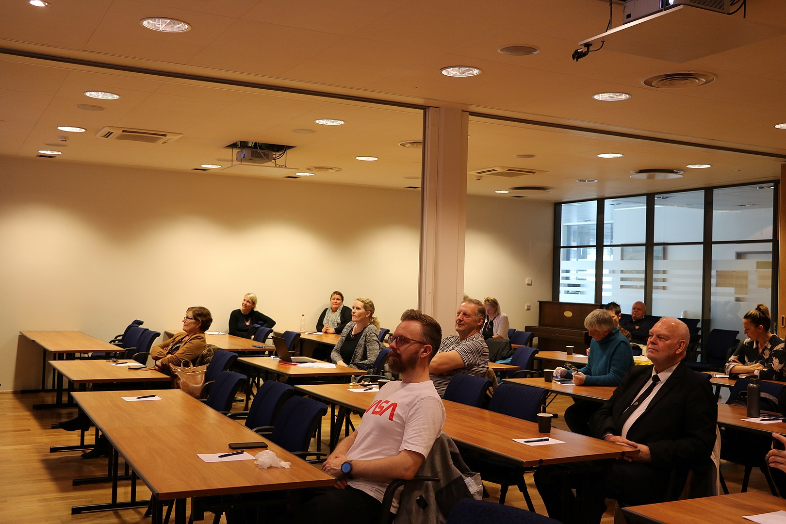 Rétt í þessu var fyrsta námsstofa Sameykis um styttingu vinnuvikunnar að hefjast á Grettisgötunni. Um er að ræða fræðslu fyrir trúnaðarmenn um framkvæmd styttingarinnar, enda má eiga von á því að vinnan við styttinguna lendi á þeim að einhverju leyti. Námsstofunni er ætlað að búa trúnaðarmennina okkar betur undir þá vinnu. Á námsstofunni í dag voru 18 manns í salnum og 3 í fjarfundi en þessi námsstofa var sérstaklega ætluð trúnaðarmönnum sem starfa í skrifstofuvinnu á dagvinnutíma. Áætlað er að halda um 12 námsstofur í allt. Það er langt síðan trúnaðarmenn hafa komið í hús og ekki laust við að það sé ákveðin eftirvænting í loftinu. Það skal tekið fram að allra sóttvarna er gætt, fjarlægð milli fólks góð og nóg af spritti, grímum og hönskum.