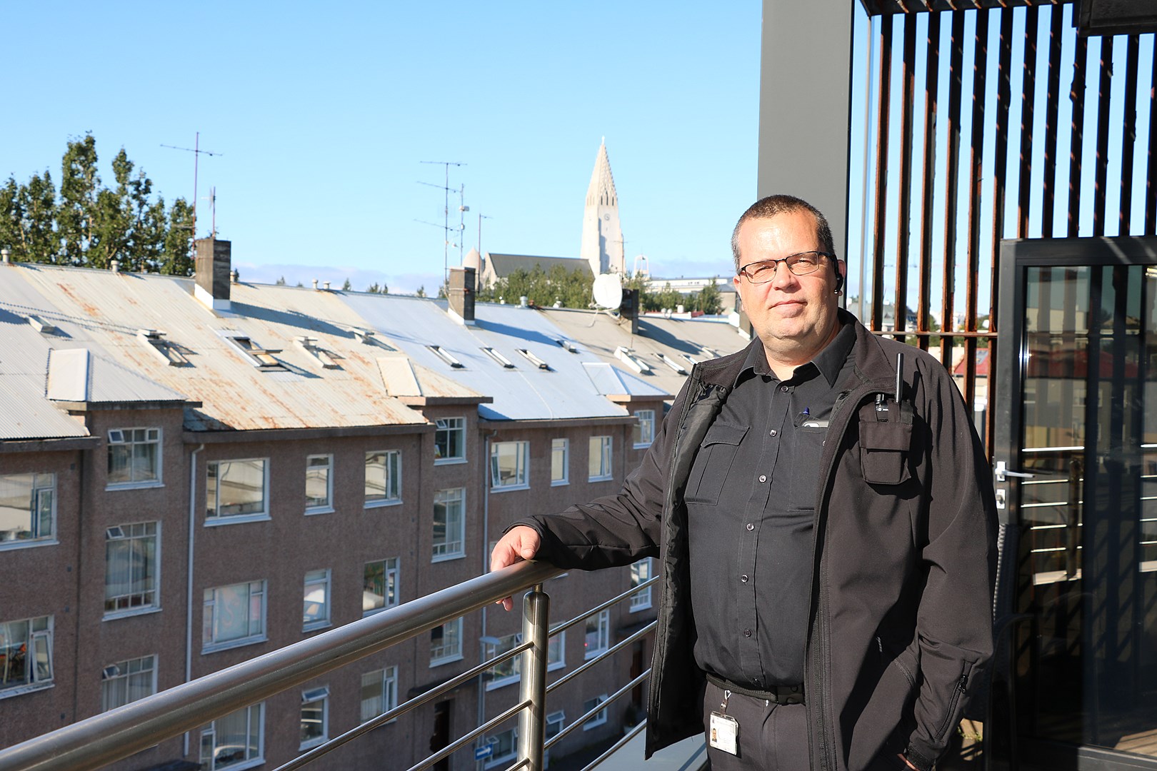 Þau Egill, Eva og Gréta voru meira en til í að lofa blaðamanni að smella af sér mynd í sólinni á svölum Grettisgötunnar.