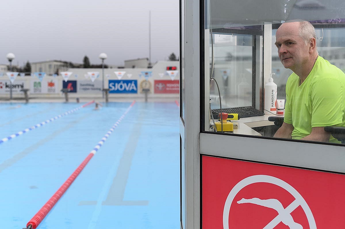 Sundlaugavörður á vakt. Ljósmynd/Sigurður Ólafur Sigurðsson