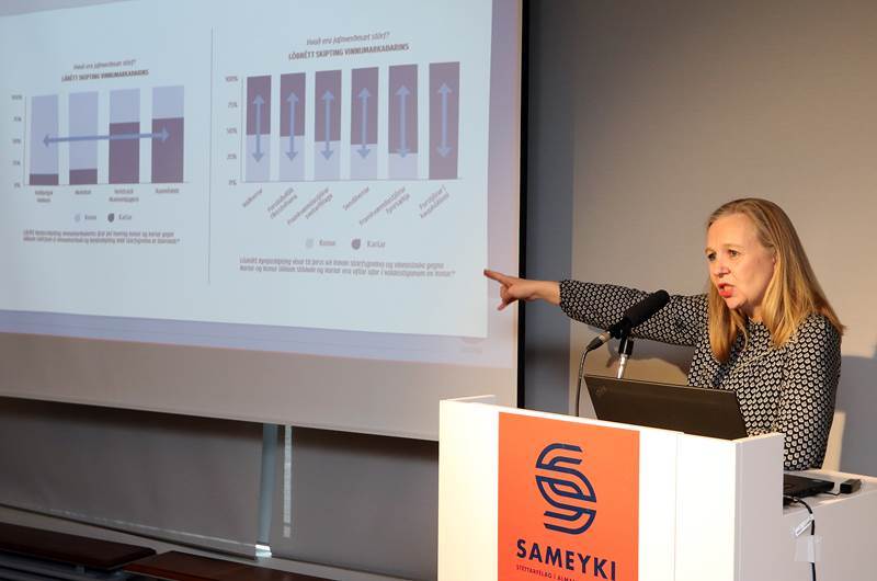 Sagði Sigríður Ingibjörg að vinnumarkaðurinn sé mjög kynskiptur og í umræddri skýrslu er fyrst og fremst verið að fjalla um skiptingu vinnumarkaðarins og hvernig sú skipting skýrir kynbundinn launamun.