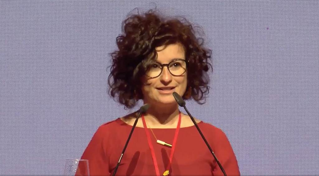 Paola Panzeri í ræðupúlti á þingi ETUC í dag.