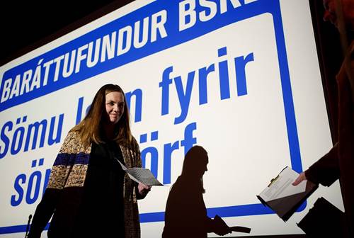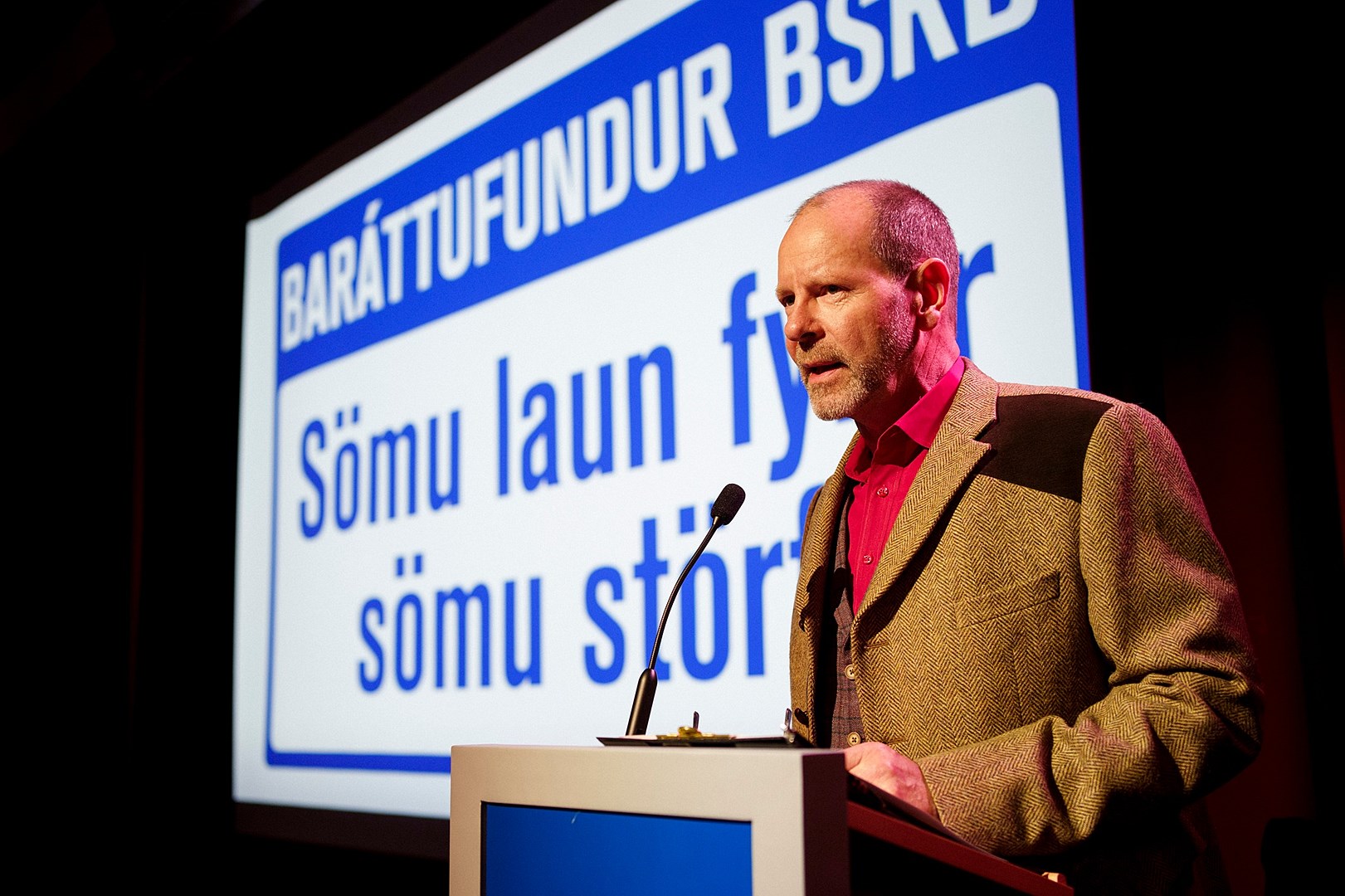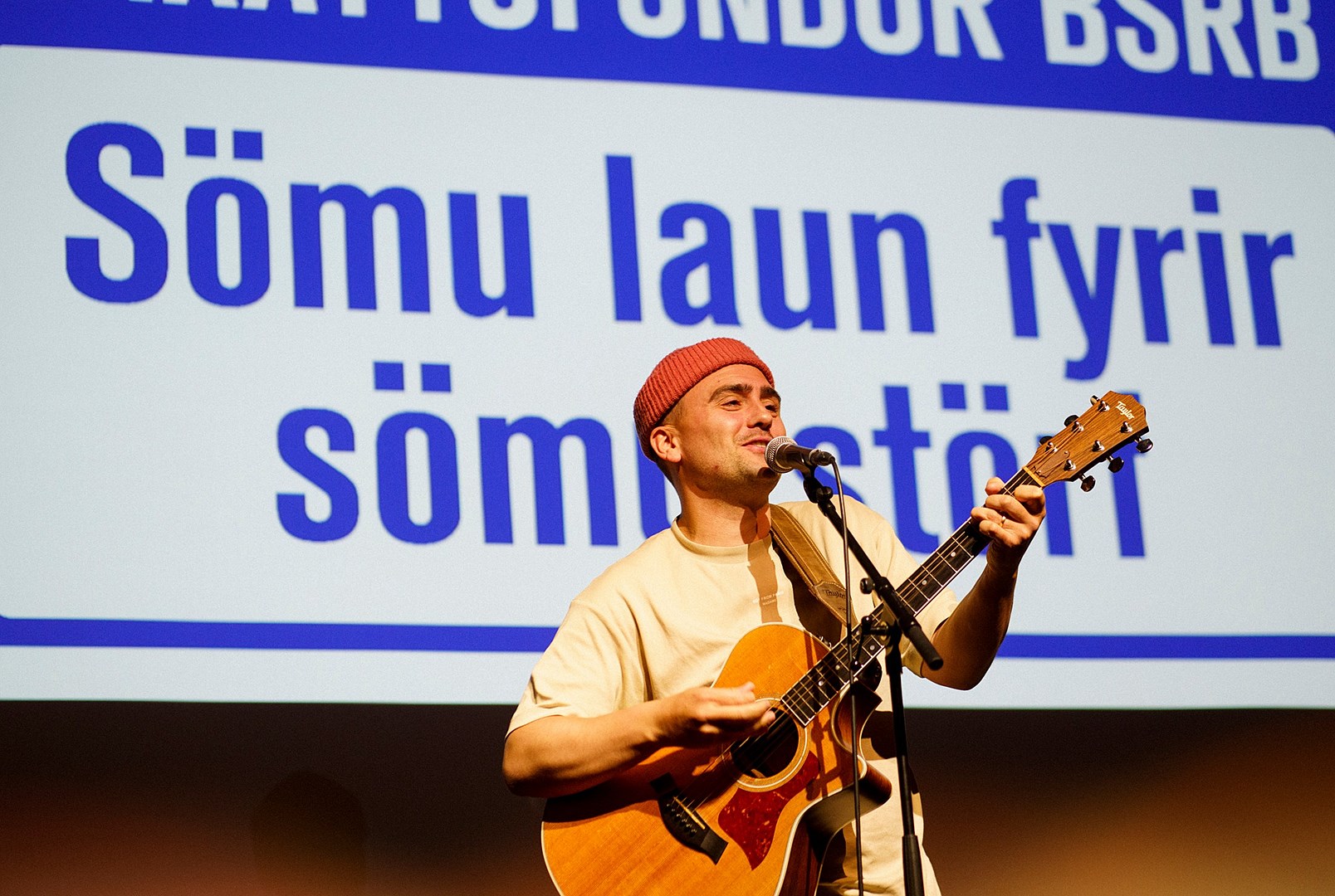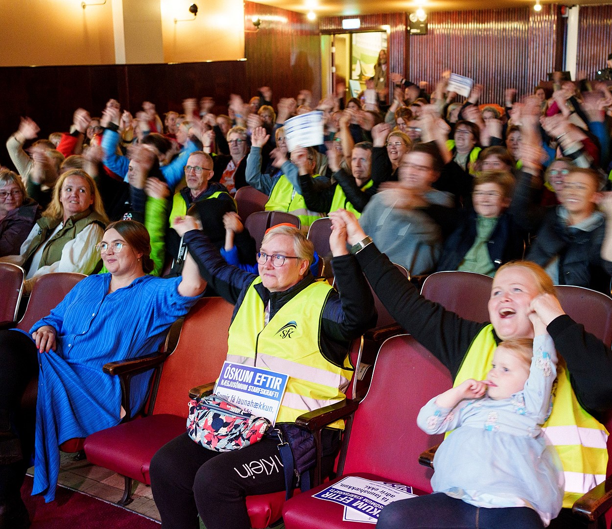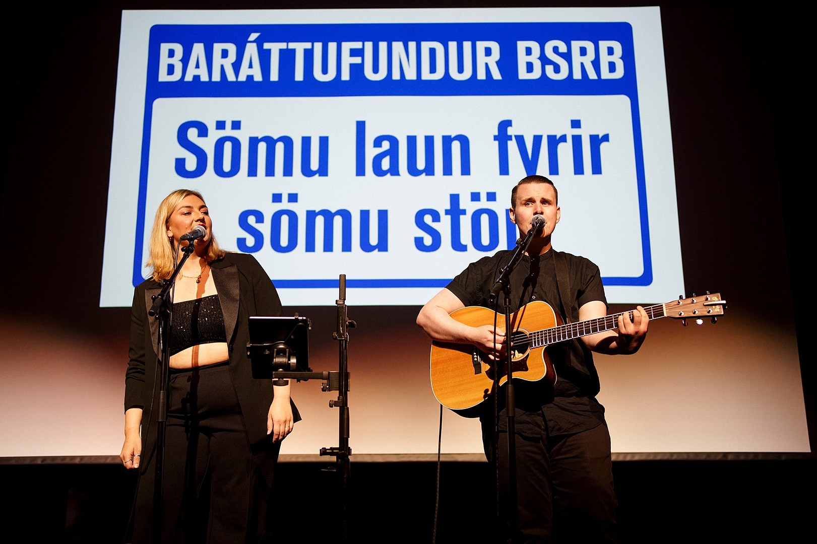 Opinberir starfsmenn hafa í gegnum tíðina þurft að berjast af hörku fyrir kjörum sínum. Nú tökum við enn einn slaginn til að ná markmiðum okkar. Það er ekki staða sem við óskum okkur, en þegar það reynir á okkar sterkasta vopn, þá beitum við því. Í þeirri baráttu skiptir samstaðan og hugrekkið okkur öllu máli. Og því hef ég fundið fyrir sterkar en nokkru sinni fyrr. Ég finn líka vel fyrir því hér í þéttpökkuðum salnum, og veit að hún er líka á þeim fjölmörgum stöðum um landið allt þar sem félagar okkar hafa safnast saman eða eru að fylgjast með,“ sagði formaður BSRB að lokum.