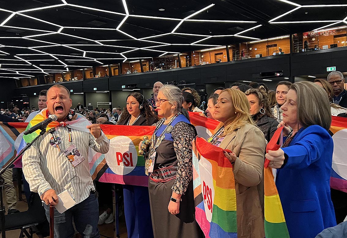 Það hitnaði í kolunum á PSI-þinginu þegar ályktun nr. 3 var rædd sem fjallar m.a. um réttindi LGBT+ og hinsegin fólks og efnhagslegt öryggi og réttlæti fyrir alla.