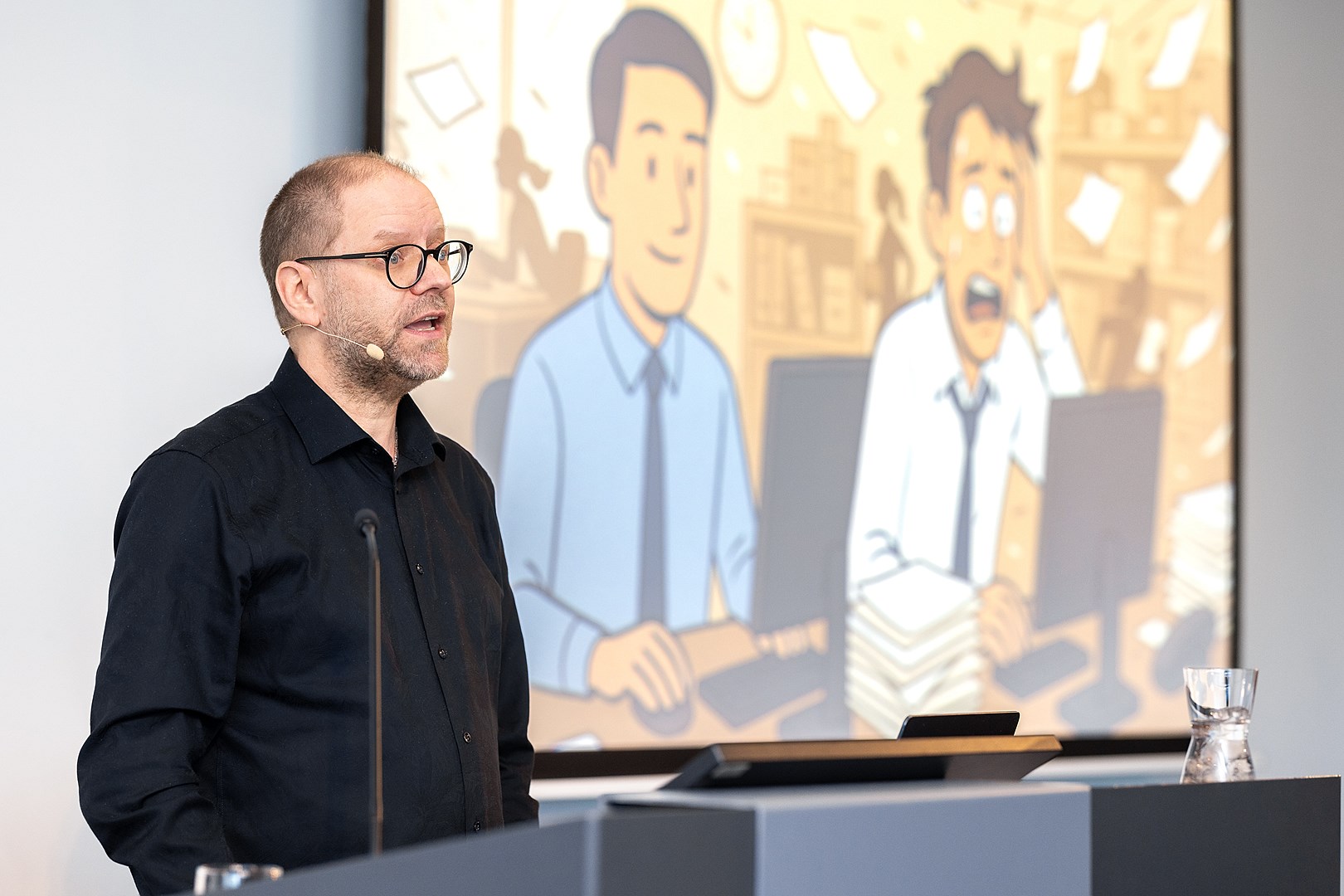Erindi hans vakti mikla athygli og umræður sköpuðust um það hvort endurmeta þurfi hvernig fjallað er um streitu og kulnun í íslensku og norrænu samhengi yfir molasopa með kökusneið í kaffihléinu.