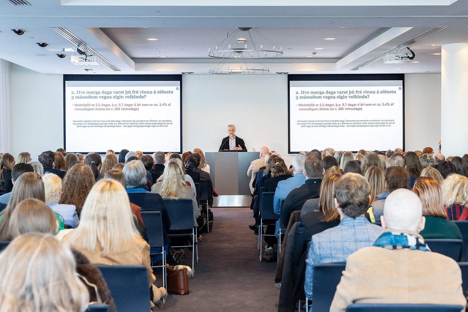 Fram kom í erindi Hörpu Hrundar Berndsen að starfsumhverfi hefur bein áhrif á veikindafjarvistir, þar sem upplifun starfsfólks af kröfum, stjórnunarstíl og stuðningi á vinnustaðnum hefur áhrif á tíðni veikindadaga og vellíðan. Gestir málþingsins fengu yfirlit yfir rannsóknir sem sýna hvernig vinnuumhverfið mótar bæði líkamlega og sálræna heilsu.