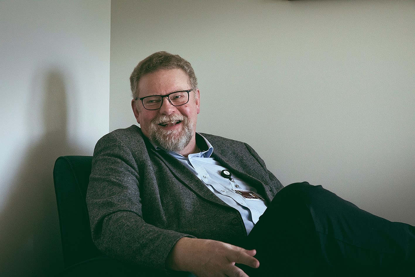 „Ég er fæddur fyrir norðan, eða eins og ég segi stundum; ég er fæddur fyrir norðan á Skagaströnd, ættaður að vestan og ólst upp fyrir austan á Reyðarfirði en bý fyrir sunnan í Reykjavík. Öll þessi 37 ár hef ég keyrt á milli. Þannig að þetta eru orðnir ansi margir kílómetrar á brautinni,“ segir hann rólegri röddu og lítur traustu augnaráði til blaðamanns.