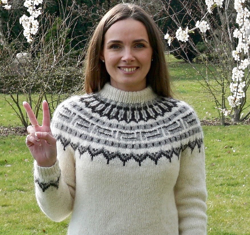 Myndin sýnir peysuna sem verður prjónuð á námskeiðinni, en hægt er að hafa hana bæði með tveimur og þremur litum.